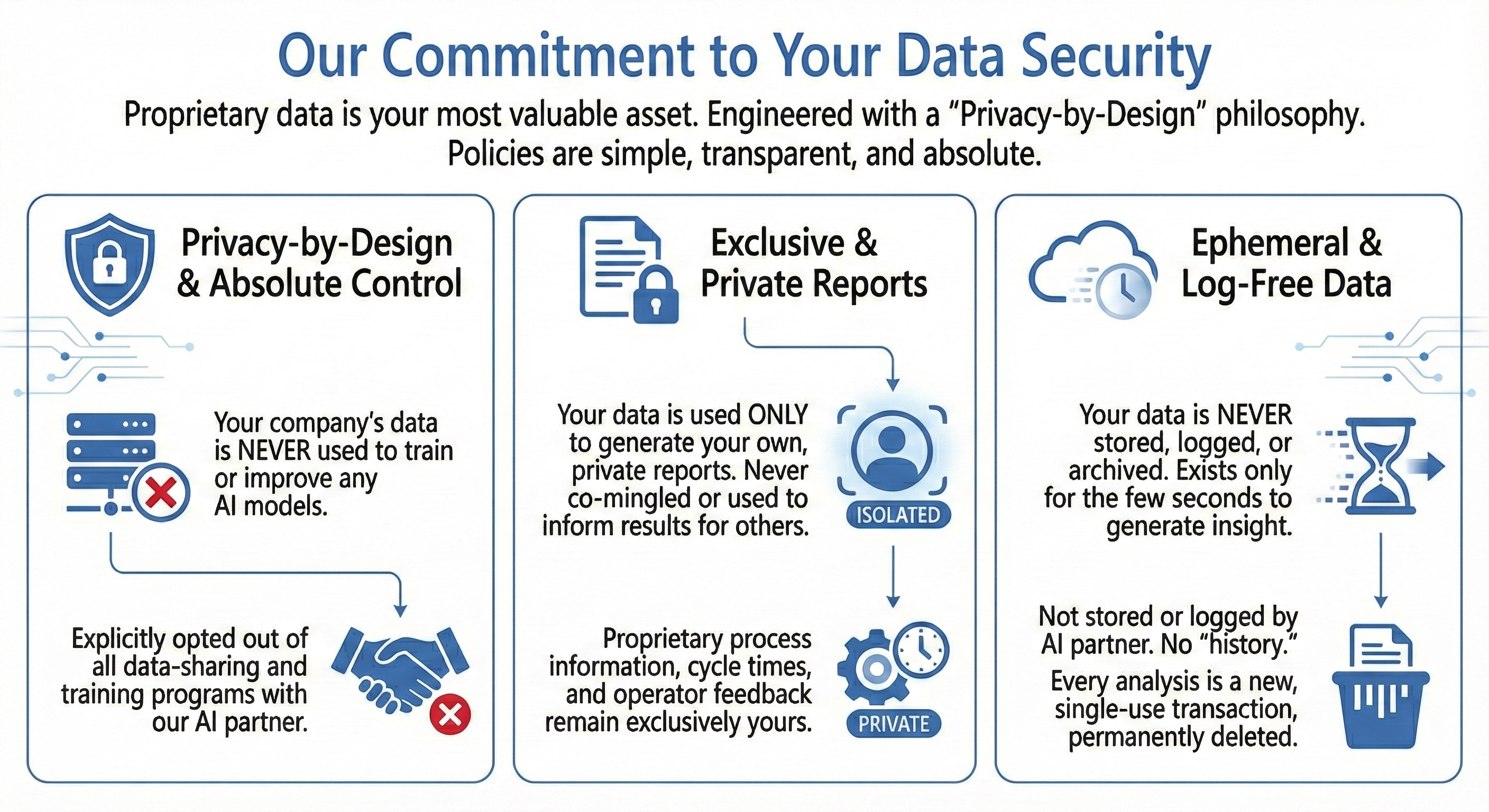 - Your proprietary process information, cycle times, and operator feedback remain exclusively yours.